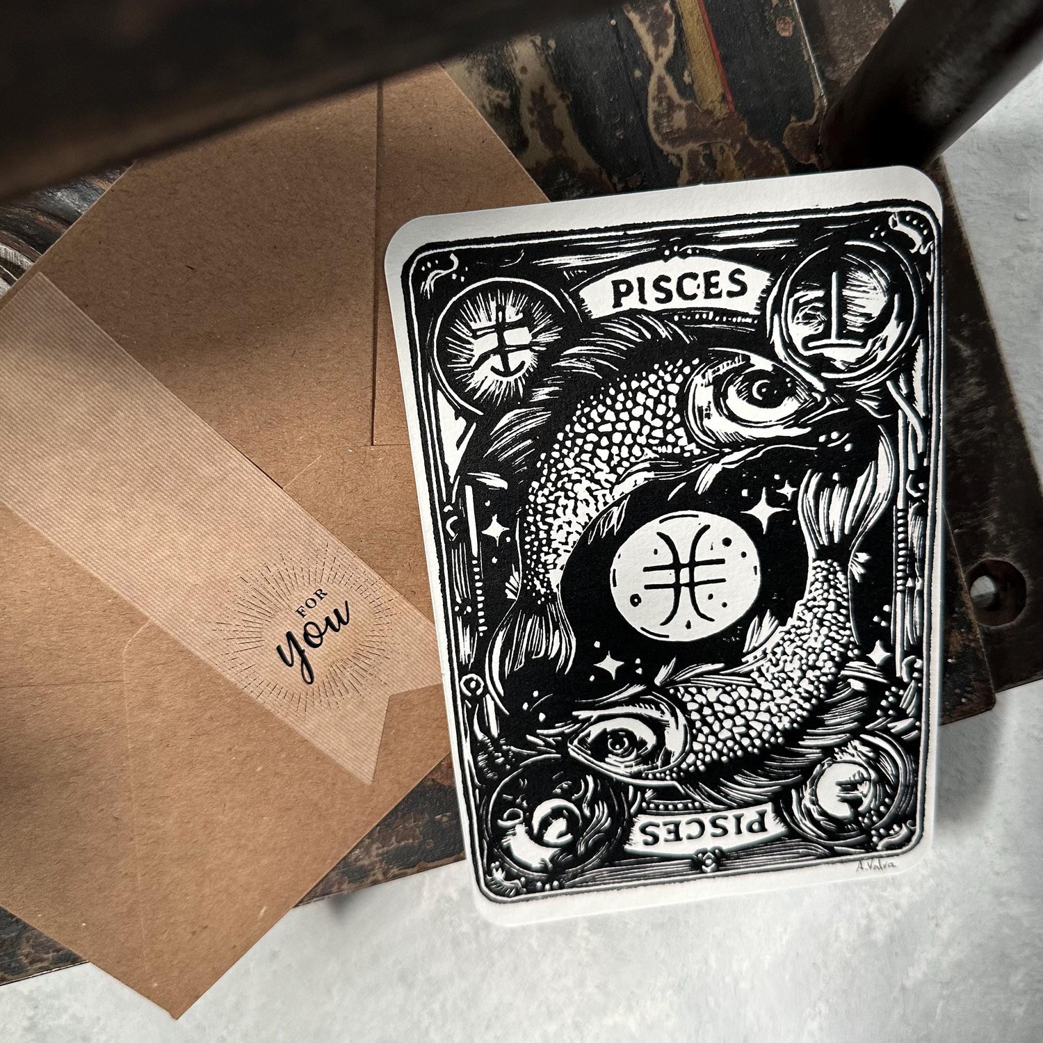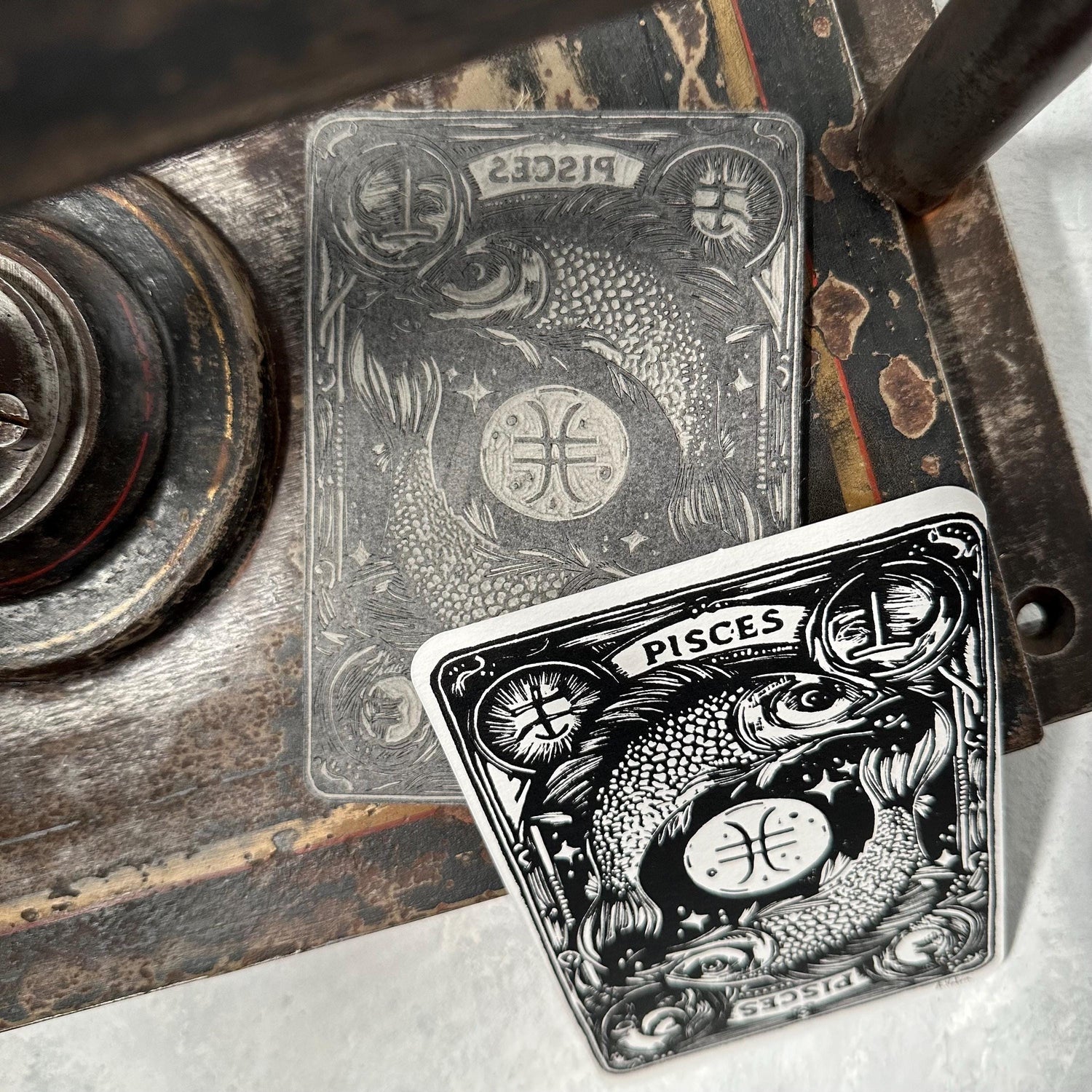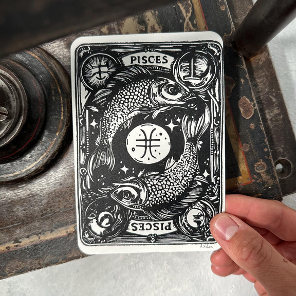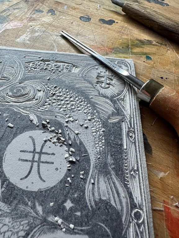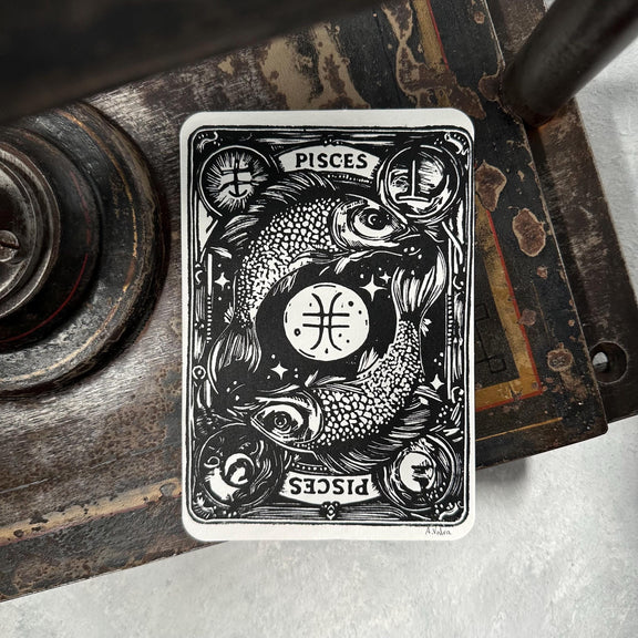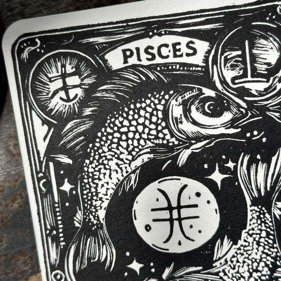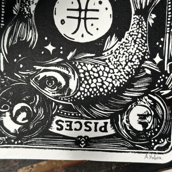 Sternzeichen Fische Linoldruck