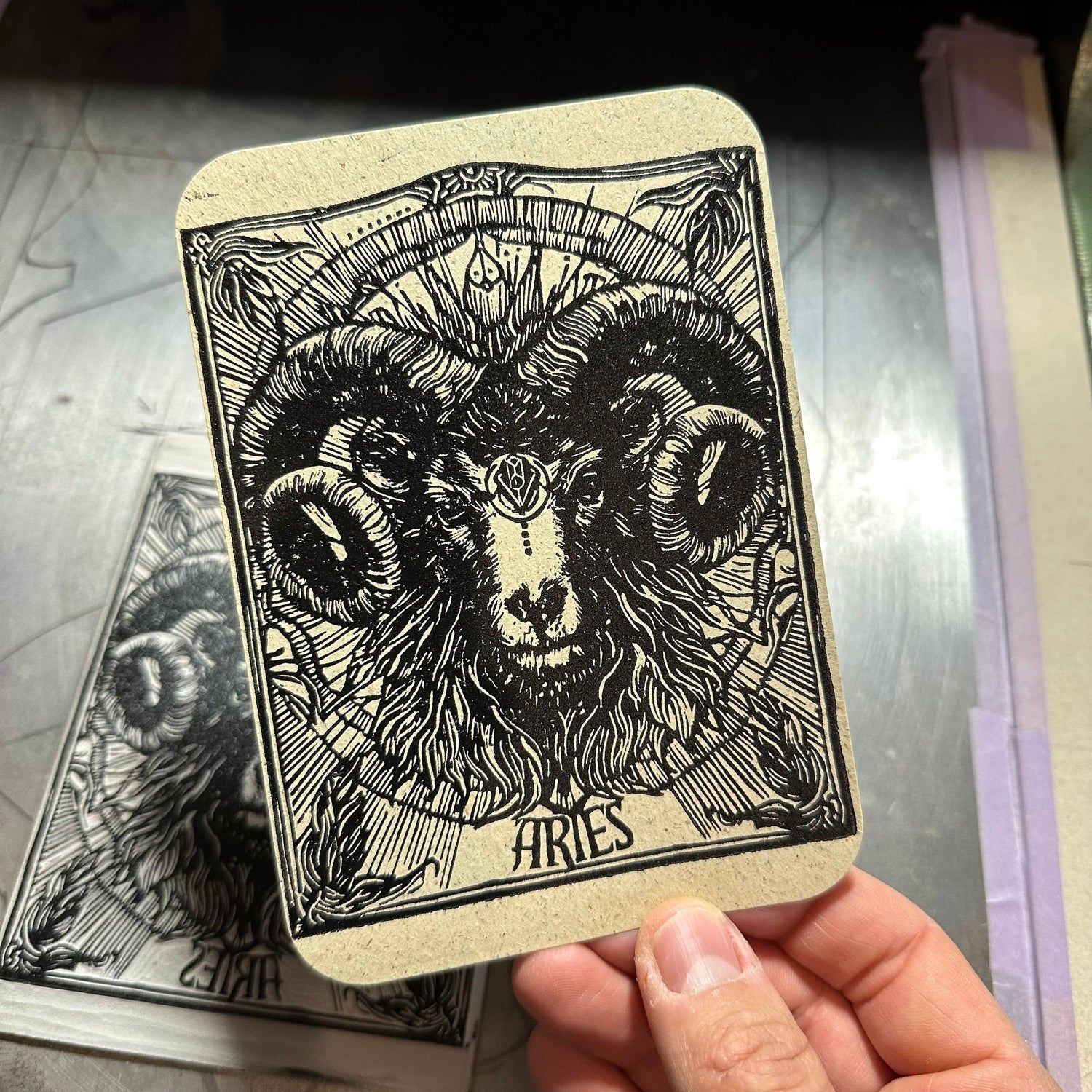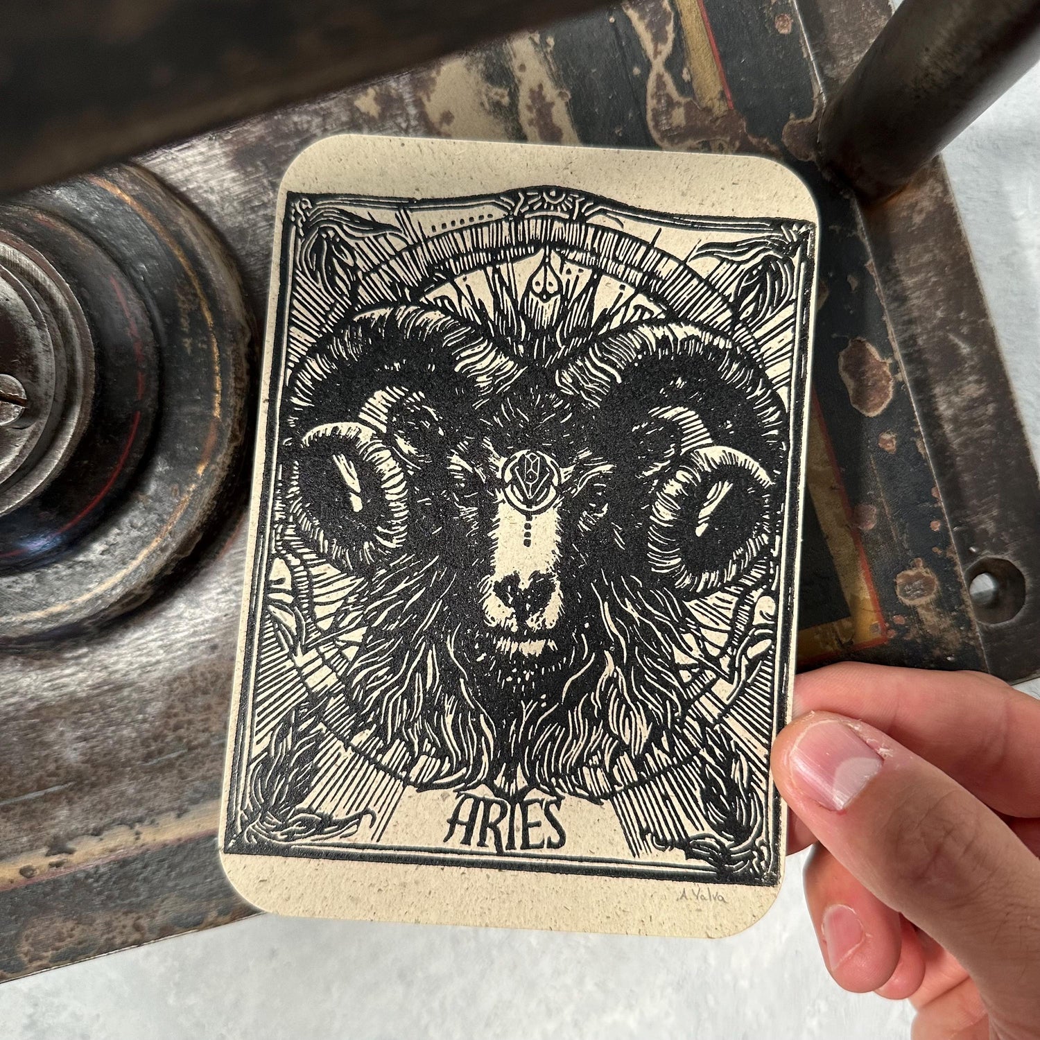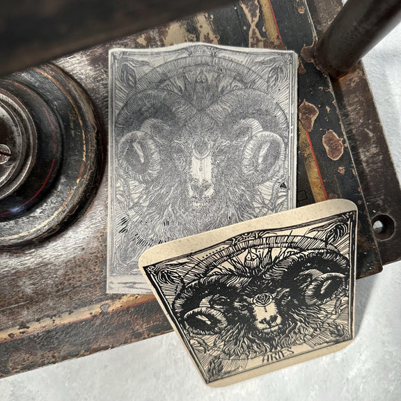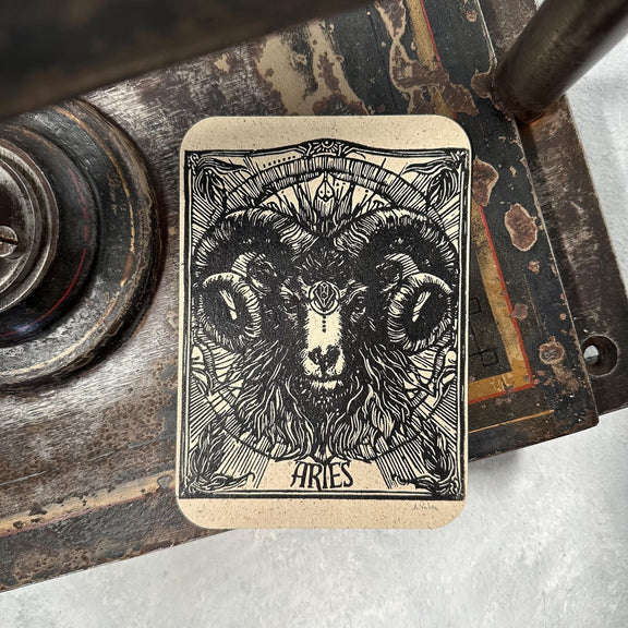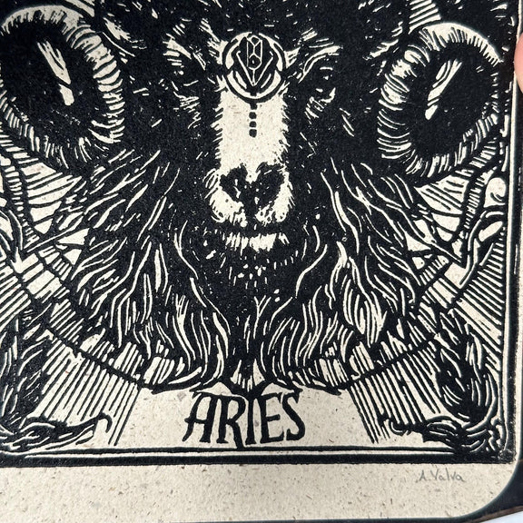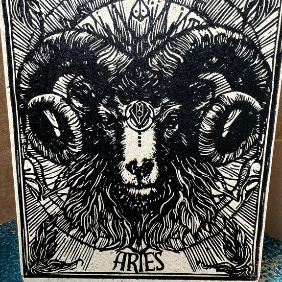 Sternzeichen Widder Linoldruck